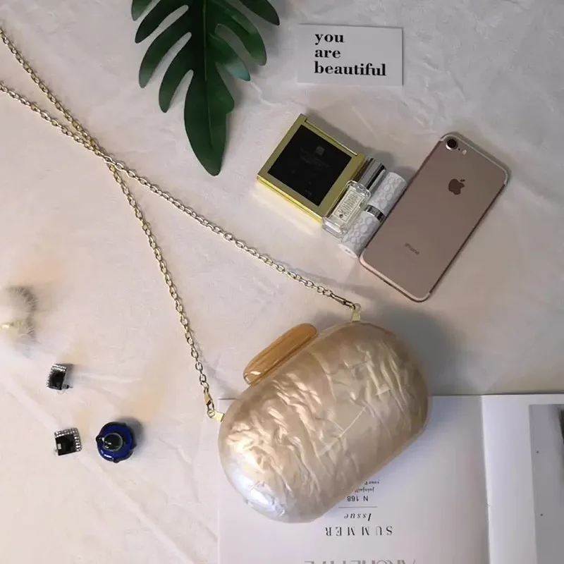 Good Product Fashion Pearlescent Acrylic Clutch Bags Oval Evening Bag Handbags Purses Round Wallet Women Beige S